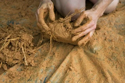 Working with earth is visceral. You mix it with your hands, feel the stickiness of clay, the crunch of straw, the cool weight of wet cob. In African and English traditions, earthen construction is hands-on and deeply sensory, often done communally, with knowledge passed through generations.